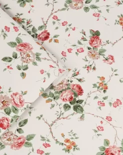 This striking floral print was previously used in the 1990s as part of the Laura Ashley Fashion Collection. Named after Laura Ashley’s maiden name Mountney, the design illustrates climbing roses on trailing branches. Bring the outdoors in with this stunning botanical print.