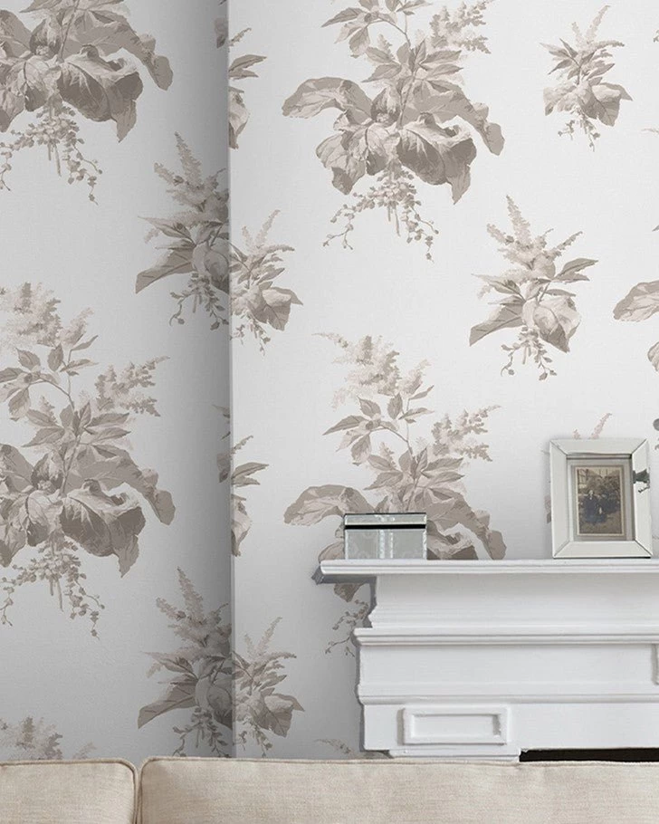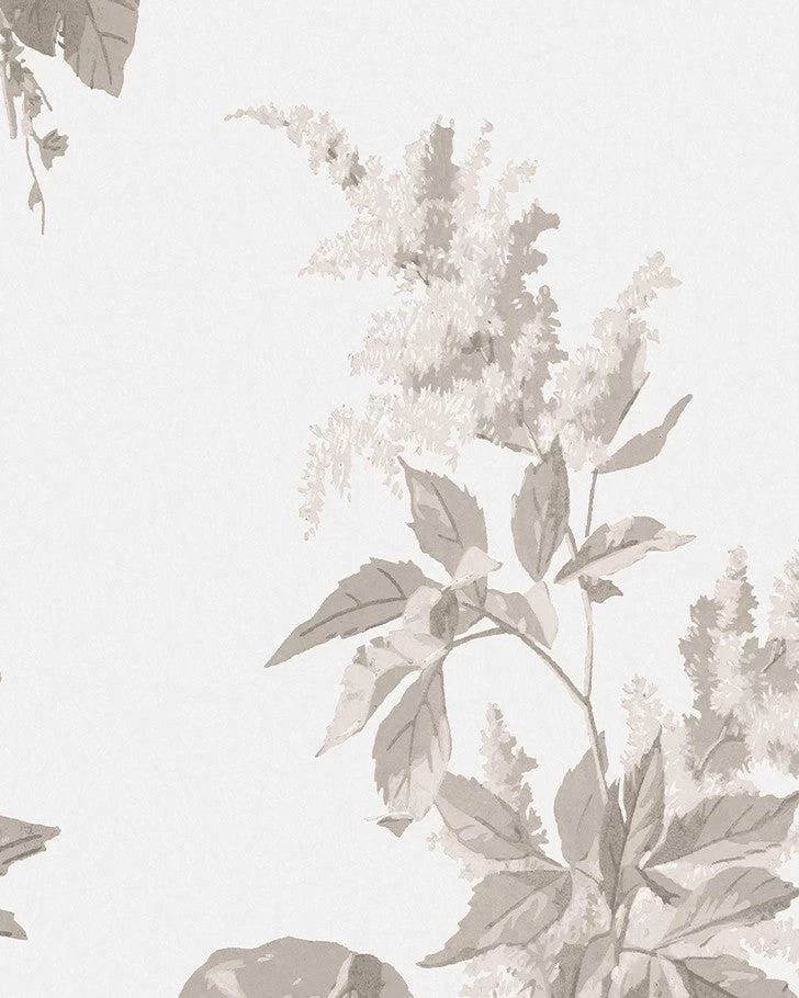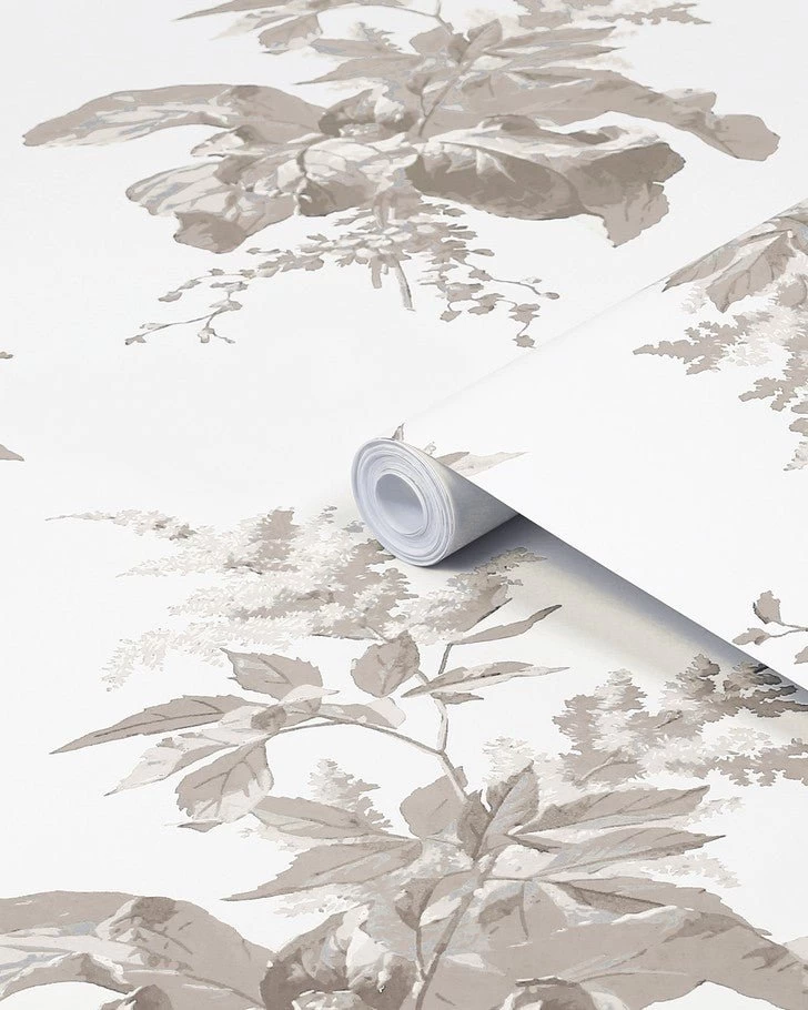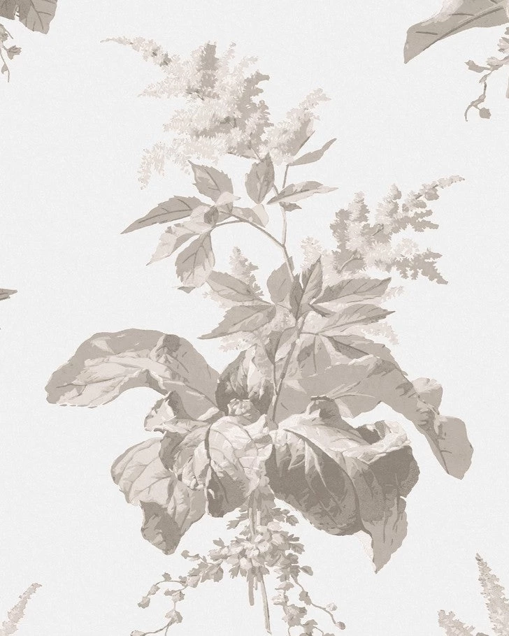 This eye-catching design was originally inspired by a sample of wallpaper added to the Laura Ashley archive in 1987. Narbeth is a large-scale naturalistic design that features bouquets of deciduous tree leaves intertwined with feathery flowers. In the dove grey colorway, this wallpaper is perfect for creating an elegant interior.