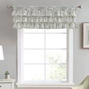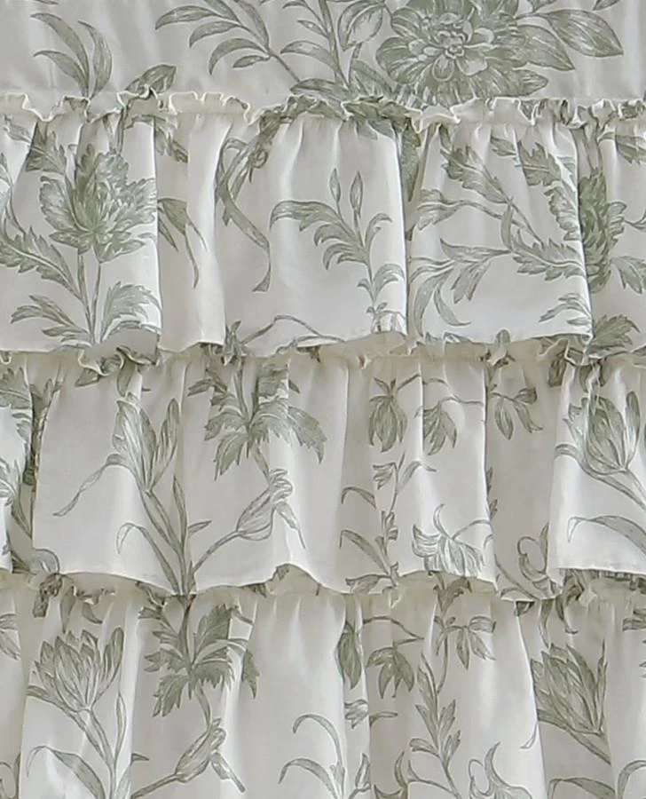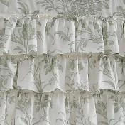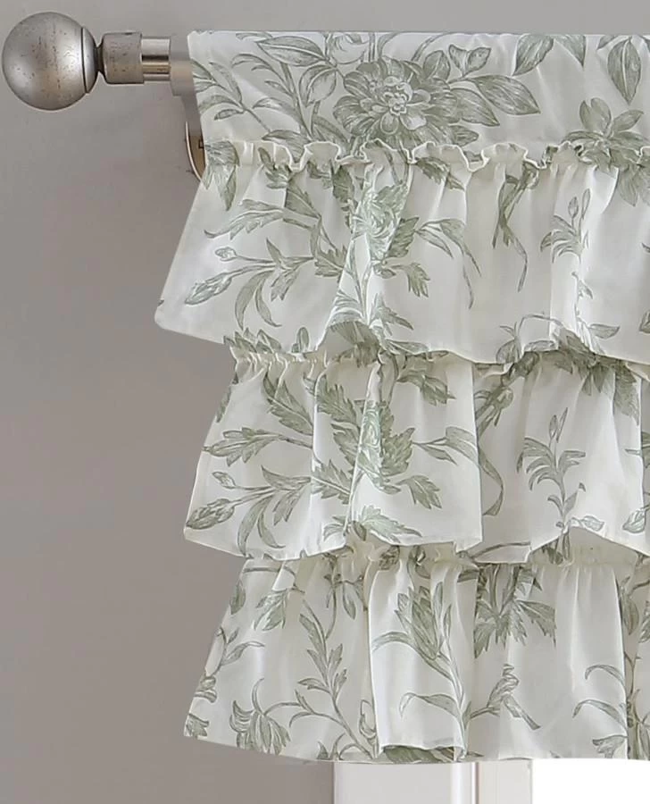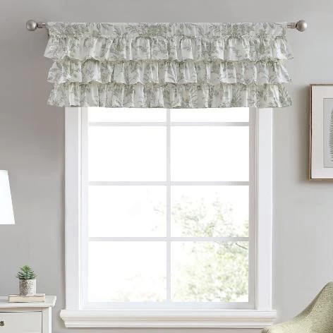 Sage green is a serenely beautiful color and it brings a lovely tranquility to the Laura Ashley Natalie Window Valance. The classic floral toile is printed on a cotton cream ground. Valance measures 15″L x 50″W and features a 3″ rod pocket. Machine washable for easy care.