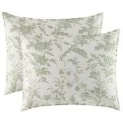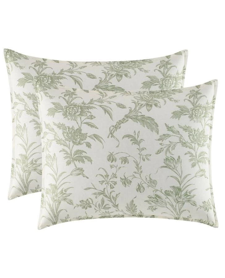 Sage green is a serenely beautiful color and it brings a lovely tranquility to this classic floral toile on a cream cotton ground. Coordinated with a crisp shirring stripe on the duvet reverse, this timeless classic fits easily into a modern bedroom. Set includes a duvet cover with button and tie closure and two standard shams (twin size includes one sham). Euro shams, throw pillows and duvet insert are not included.