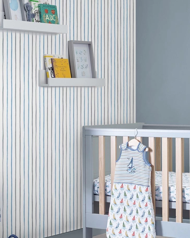 Create a subtle and chic children’s space with the Painterly Stripe wallpaper. The Painterly Stripe pattern is a timeless design featuring vertical blue stripes on a white background. Originally added to the Laura Ashley archive in 2015, this wallpaper is perfect for use in children’s bedrooms. Â