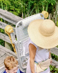 With a fresh new nautical motif by the iconic Laura Ashley, LowTides Dune High Backpack Beach Chair in Palmetto will make you the envy of every beachgoer. The playful design holds numbers and dates commemorating this exclusive collaboration. Our lightweight beach chair has built-in modern features and is made with REPREVE® water and stain-resistant fabric. REPREVE® high-quality fibers are made from 100% recycled materials.