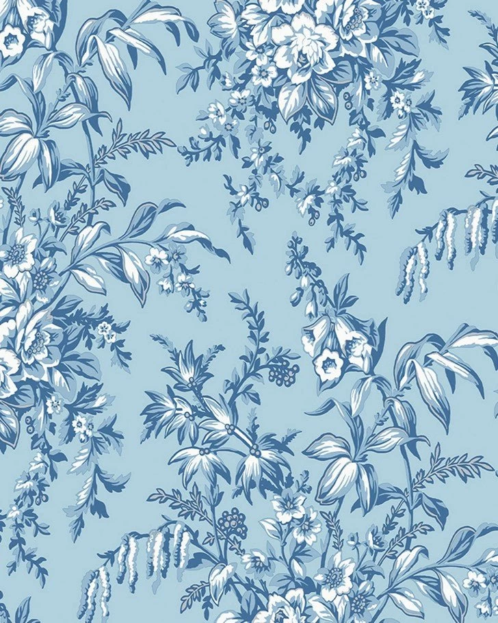 Inspired by a stunning antique textile quilt, our Picardie wallpaper design allows you to bring the outside in. Its beautiful large-scale flowers create a natural botanical look. In the blue sky colorway, this wallpaper gives any room a bright and refreshing feel.