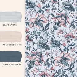 Classically ornate, Portia is an intricate and appealing print. Accents of paisley and elements of Jacobean style are inspired by antique fabric held within the Laura Ashley archive. This timeless design in dark seaspray combines simplicity with natural glamour.