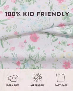 Introducing the Laura Ashley kids posey dance microfiber sheet set, a vibrant and cheerful addition to your child’s bedroom that combines comfort and style with a playful floral twist. This delightful sheet set showcases a captivating floral design in shades of pink, yellow, and green, encapsulating a celebration of nature’s beauty, with an intricate floral pattern that dances across the sheets. The cheerfulness of colors adds a pop of joy to your child’s room, creating a space where they can unwind and dream amidst a garden of blossoms. The materials are 100% soft microfiber. CPSIA tested, ensuring it meets the highest safety standards for kids’ products. Additionally, it is Oeko-Tex Certified, guaranteeing that it is free from harmful substances, making it safe for your child’s delicate skin.
