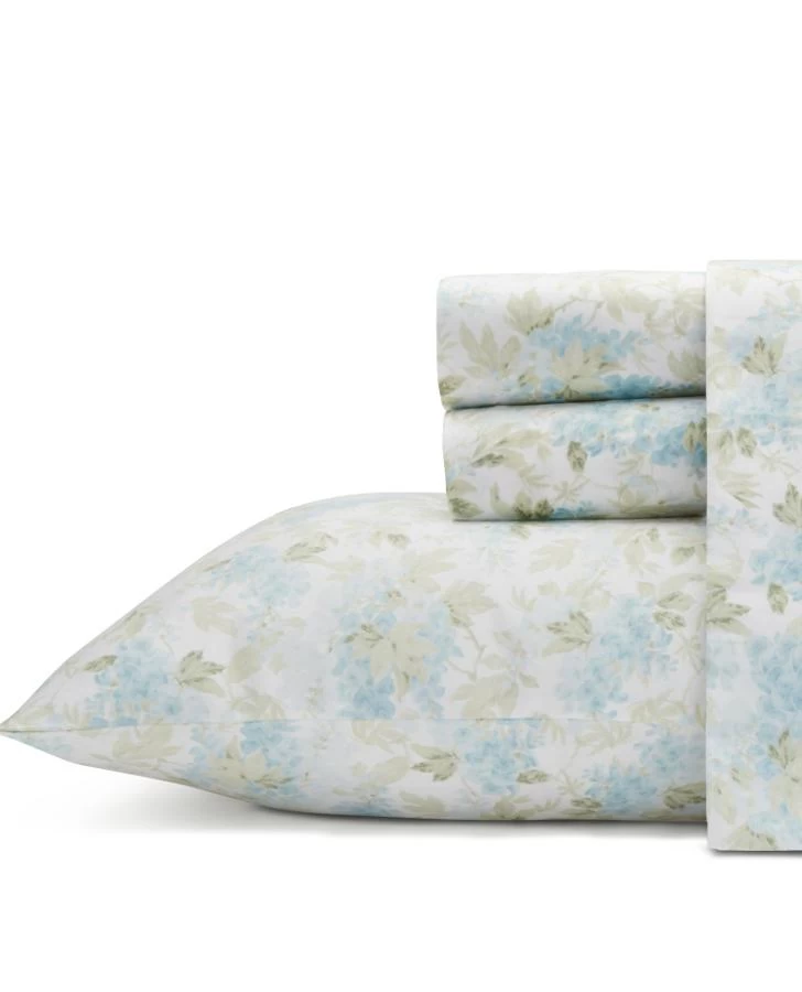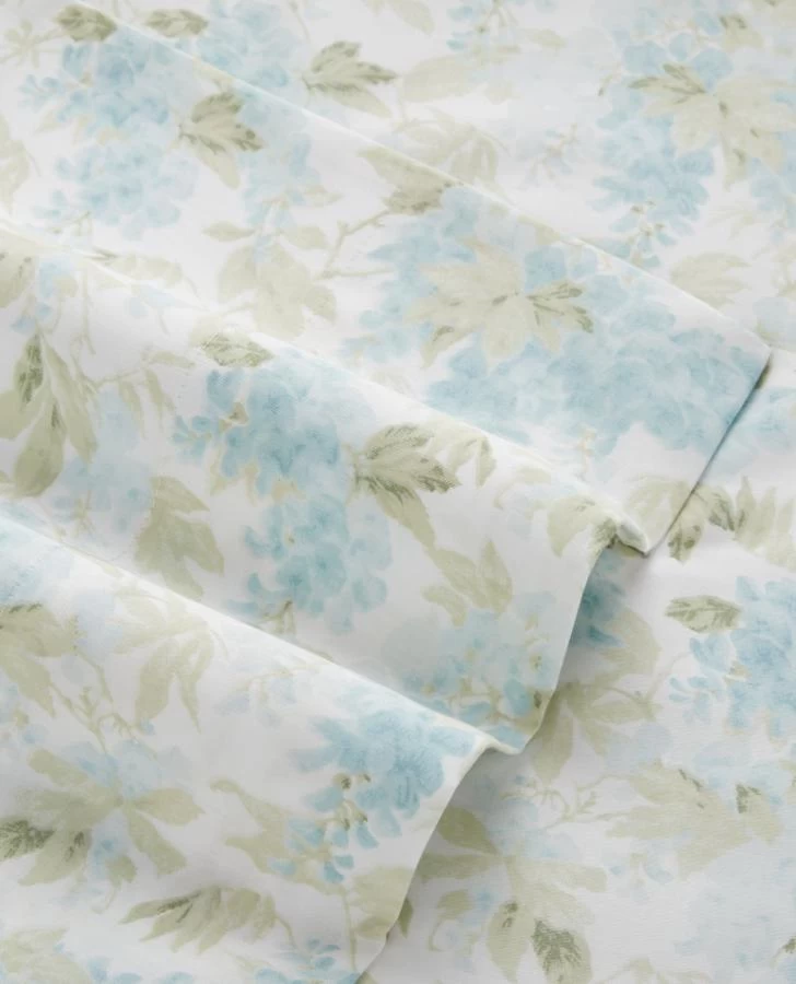For an elegant addition to any bedroom, add the Laura Ashley Rena sheet set to your bedding. This smooth sateen set features a painterly wisteria floral in a soft mineral coloration. Made of cotton sateen, these sheets feel especially soft and smooth. Fully elasticized fitted sheet fits mattresses up to 15″ deep.