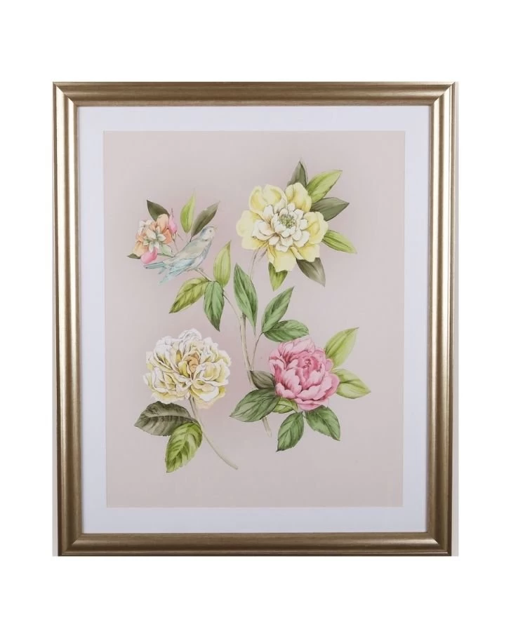 Create a charming focal point in your room with the Roisin wall art. This stunning Chinoiserie-inspired wall art combines delicate birds gently perched on peony, rose and honeysuckle stems. Use alone for a pretty floral feel or combine with one of the other 4 available colorways to really make a statement on your walls.