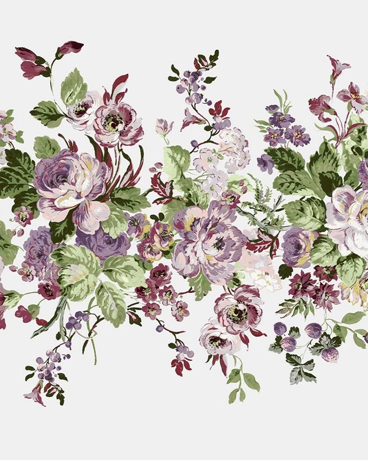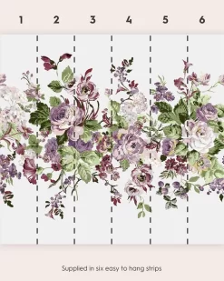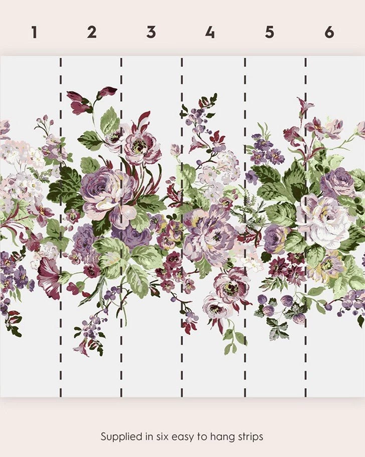 Give the delightful look of country charm with this striking floral mural. Inspired by a painted artwork from the Laura Ashley archive, the Rosemore wall mural is charismatic and pretty. This design incorporates traditional British flowers and fruits, such as roses, colvolvulus and strawberries. Laura Ashley murals come on one roll with 6 referenced panels.