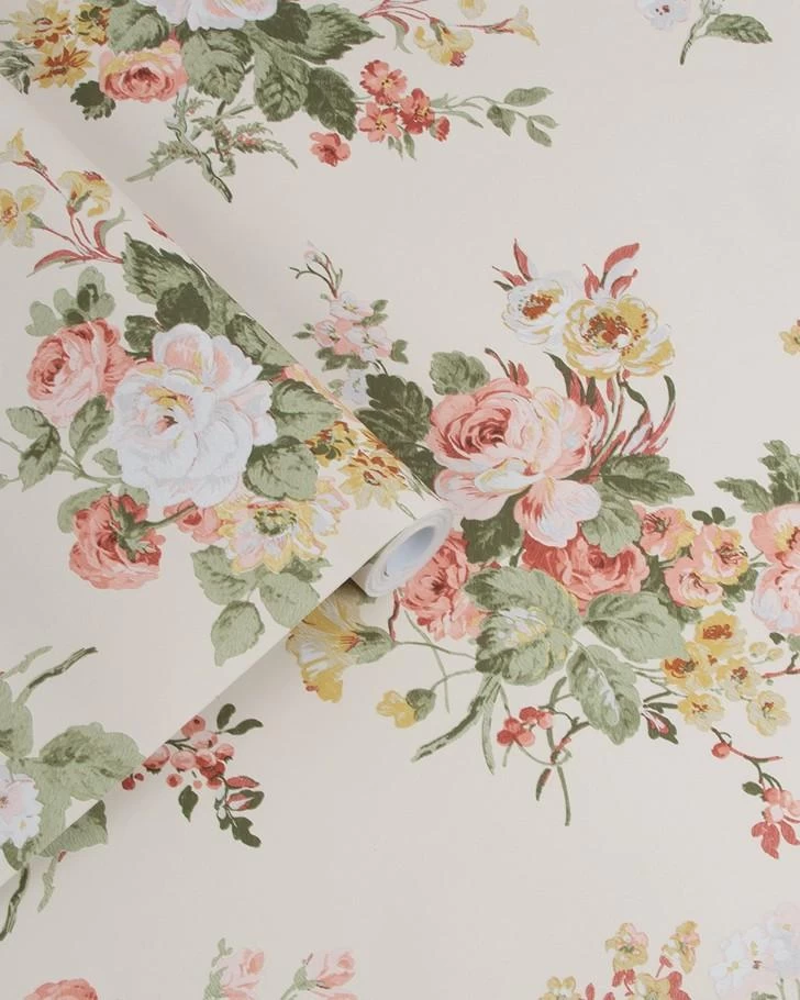 Charismatic and pretty, this striking floral print was inspired by a painted antique artwork held in the Laura Ashley archive. The Rosemore design incorporates traditional British flowers and fruits, such as roses, convolvulus, and strawberries, giving that delightful look of classic country charm.