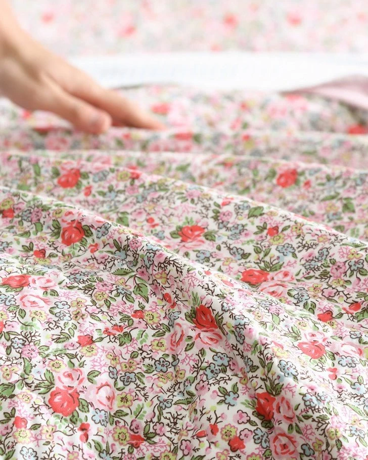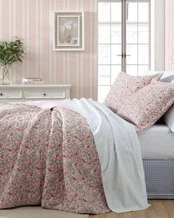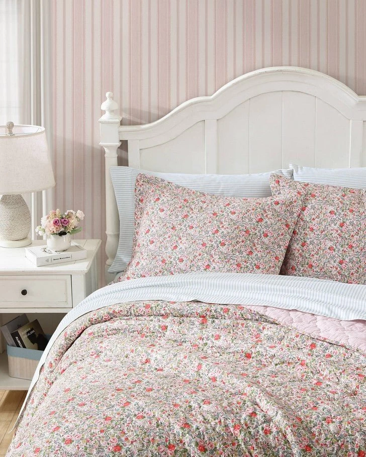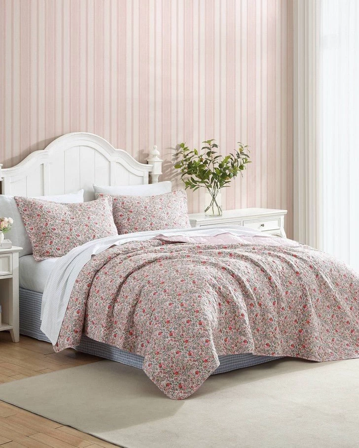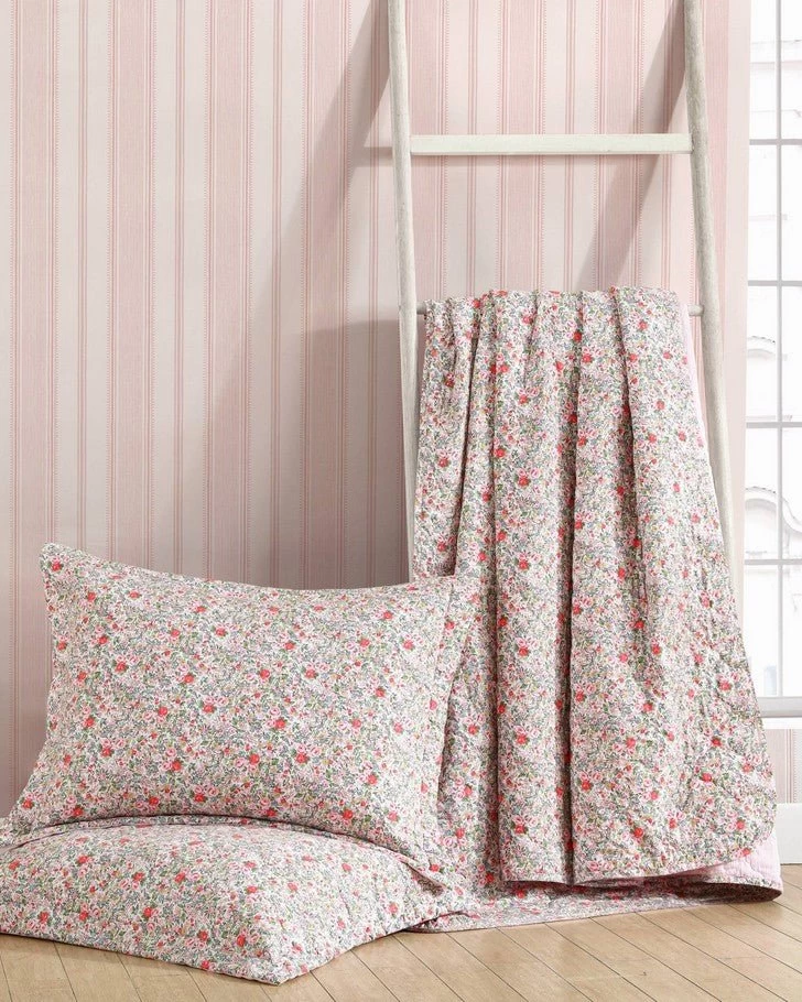 Blending innovation with tradition, Laura Ashley has reimagined its hallmark ditsy floral prints for modern living. Rowena is an heirloom inspired quilt decorated with a small scale painted floral in a fresh palette adding both warmth and charm to any bedroom. This quilt is lightweight for year round use and layering. Pre-washed for added softness, this quilt features a cotton/polyester fill. Quilts and matching shams are sold separately. Machine washable for easy care.