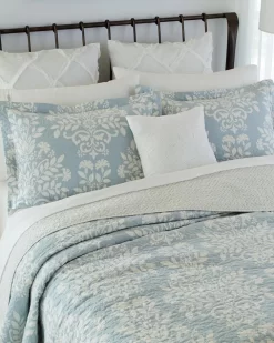 A cool, fresh addition to any contemporary bedroom, the Rowland quilt set from Laura Ashley is made from premium cotton fabric with unique quilting and a pleasant floral pattern in white and pale blue. Each set includes a pair of matching shams (one in twin size), and both the quilt and shams feature warm and weighty cotton fill. Conveniently machine washable and perfect for country-inspired spaces, this excellent set will invigorate your home for years to come.