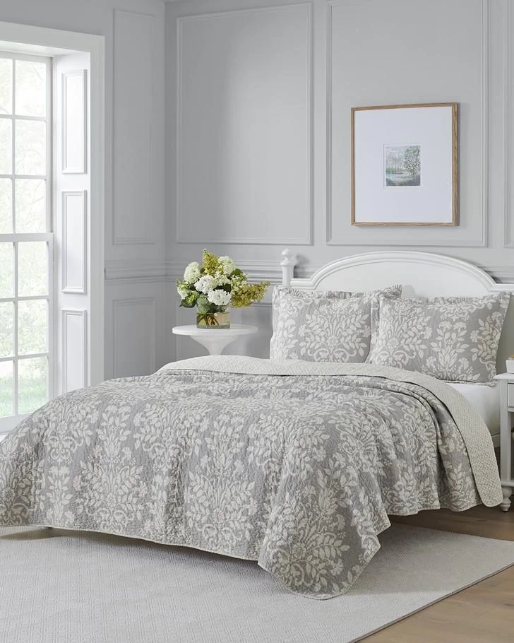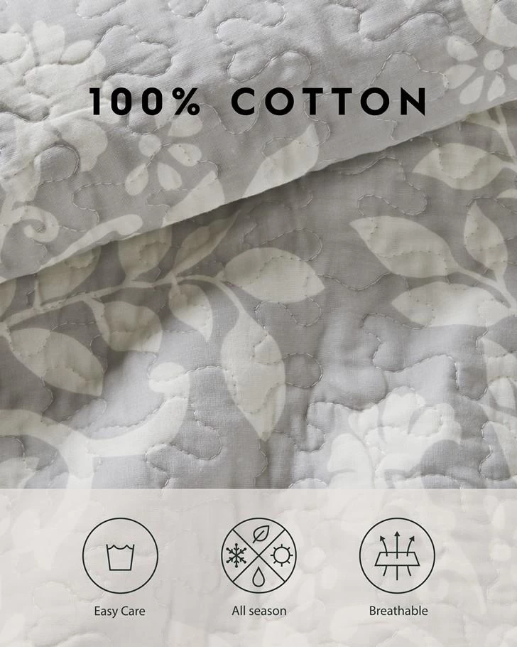A cool fresh addition to any contemporary bedroom, the Rowland quilt set is made from premium cotton with unique quilting and a pleasant floral pattern in white and medium grey. Each set includes a pair of matching shams (twin size has one sham) and both the quilt and shams feature warm and weighty cotton fill. Conveniently machine washable and perfect for country inspired spaces, this excellent set will invigorate your home for years to come.