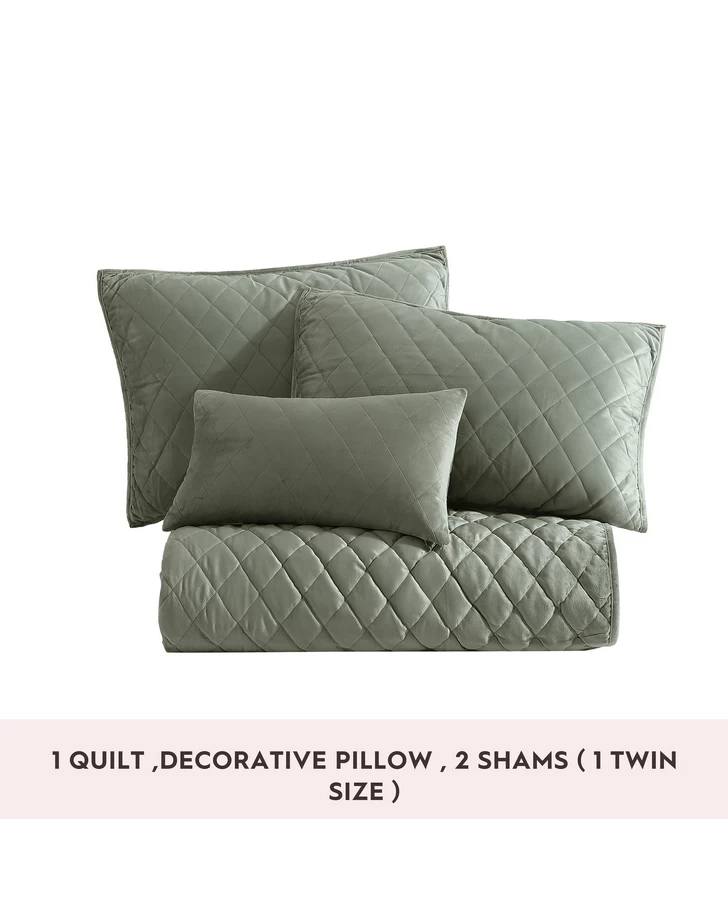 Twin 3 pc. set includes 1 quilt, 1 standard sham and 1 pillow cover.