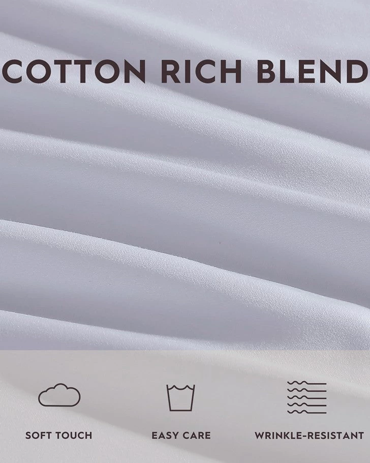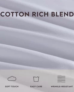 Bring simplicity and style to your bedroom decor with a Laura Ashley 800 thread count solid sateen sheet set. Featuring a serene and elegant color palette, these sheets are the perfect addition to any home. Constructed with an 800-thread count, luxurious cotton blend, this sheet set has a silky feel. The sateen weave is known for its luster and drape. Set includes a fitted sheet is fully elasticized and features an extra deep pocket which fits mattresses up to 22″ deep. Sheet set is machine washable for easy care. Oeko-Tex® Standard 100 tested and certified to contain no harmful substances. Better for you and for the environment.