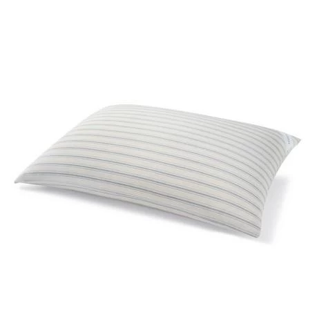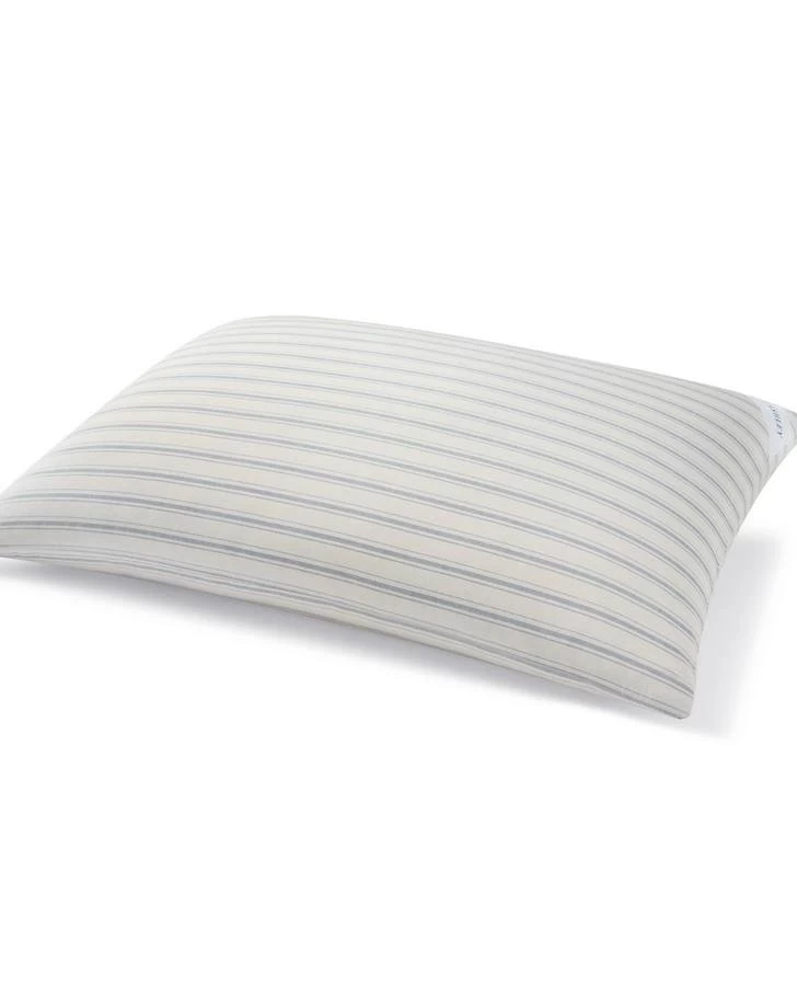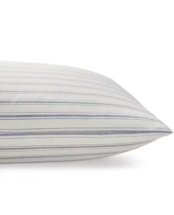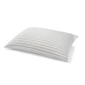 Lightly penciled ticking stripe design on 100% yarn dyed cotton pillows. Perfect plushness for year around sleep.