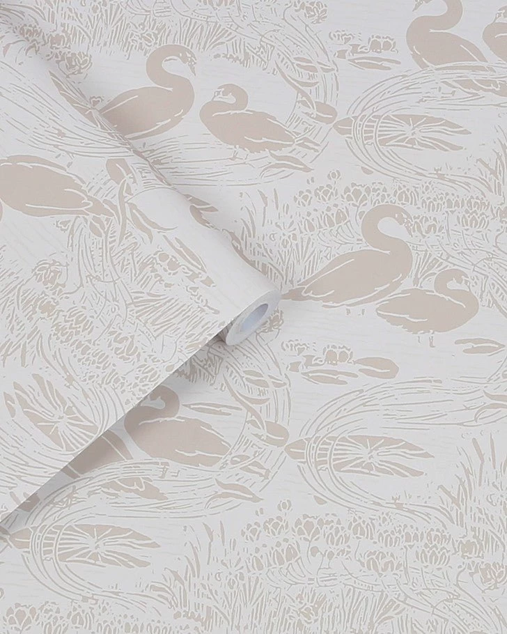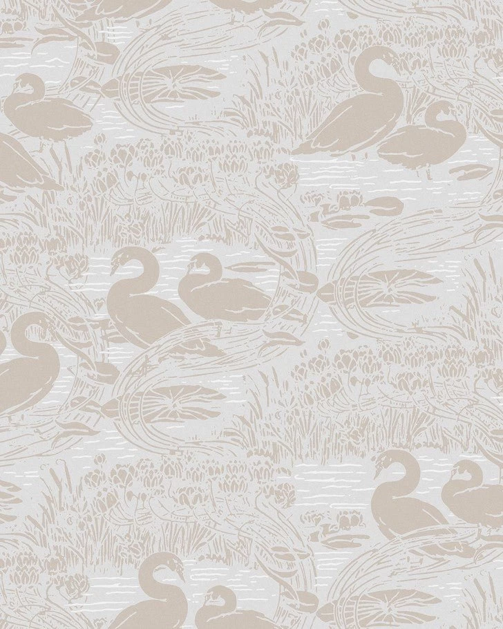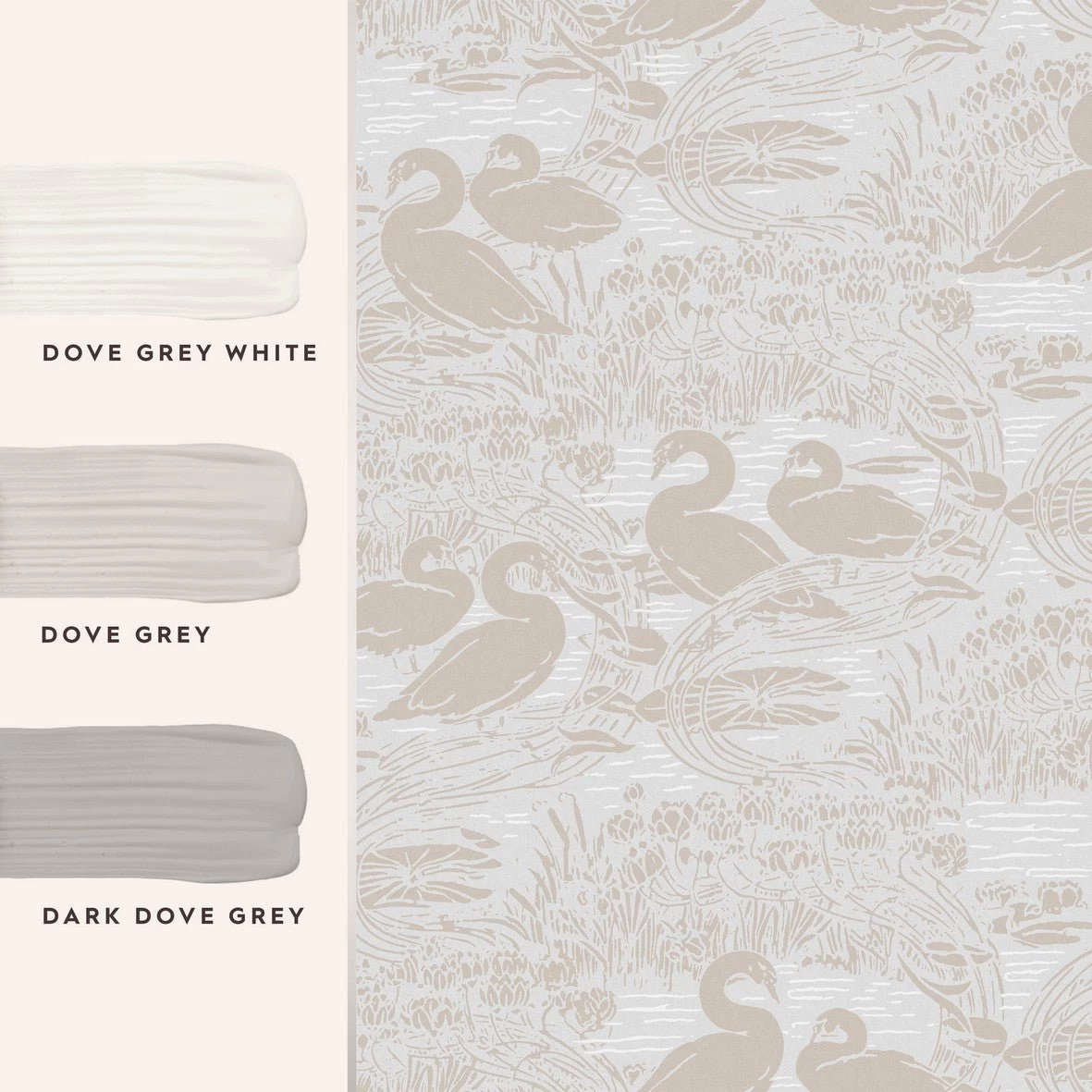 Inspired by a beautiful antique painted artwork of swans gliding across water, Swans Wallpaper is perfect for creating a serene feel to any room. The calming dove grey colorway showcases these dainty animals in a lush landscape. Pair with colorful accessories to add a burst of fun or match with neutral tones for a true country chic look.