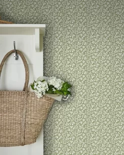 Featuring a quartet of dense potentilla-like sprigs with leaves and curving stems, this charming monoprint was inspired by a printed textile found in the Laura Ashley archive. This botanical design features an amazing amount of detail on this simple yet sophisticated print. In a calming Moss Green color, this wallpaper is sure to transform any living space.