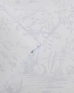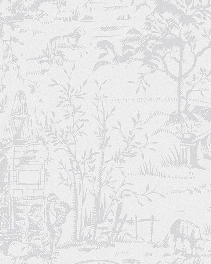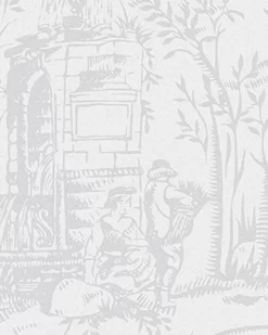 Toile de Jouy is an antique print found in the Laura Ashley archive. French and romantic, this extravagant monotonal print is classic and detailed, featuring a picturesque landscape design. The sugared grey colorway allows this wallpaper to add subtle depth to your walls.
