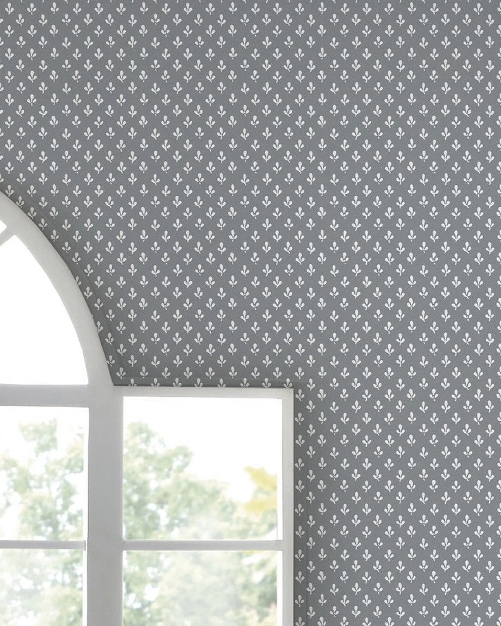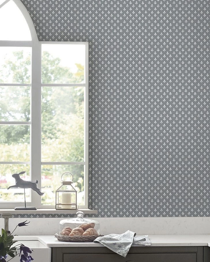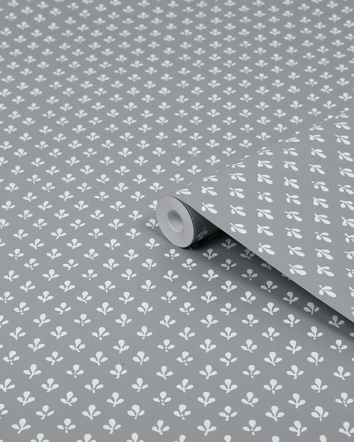 Inspired by a printed textile from the Laura Ashley archive, this charming small-scale monoprint features a trefoil design with stems in a half-drop pattern. Trefoil wallpaper is the ideal solution for an inspired wall. The contemporary slate grey color palette makes this wallpaper perfect for many different rooms in your home.