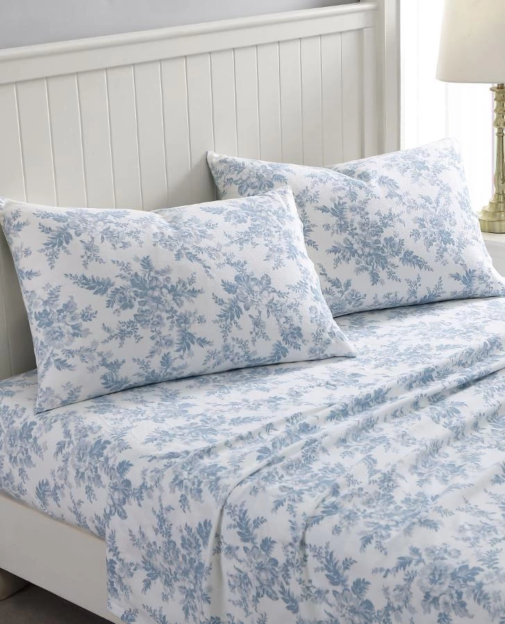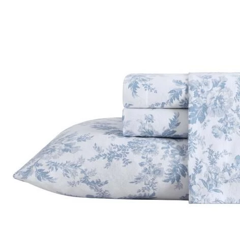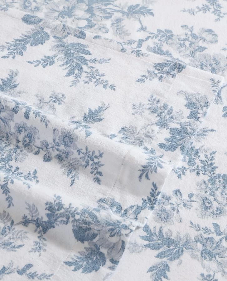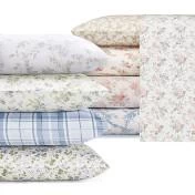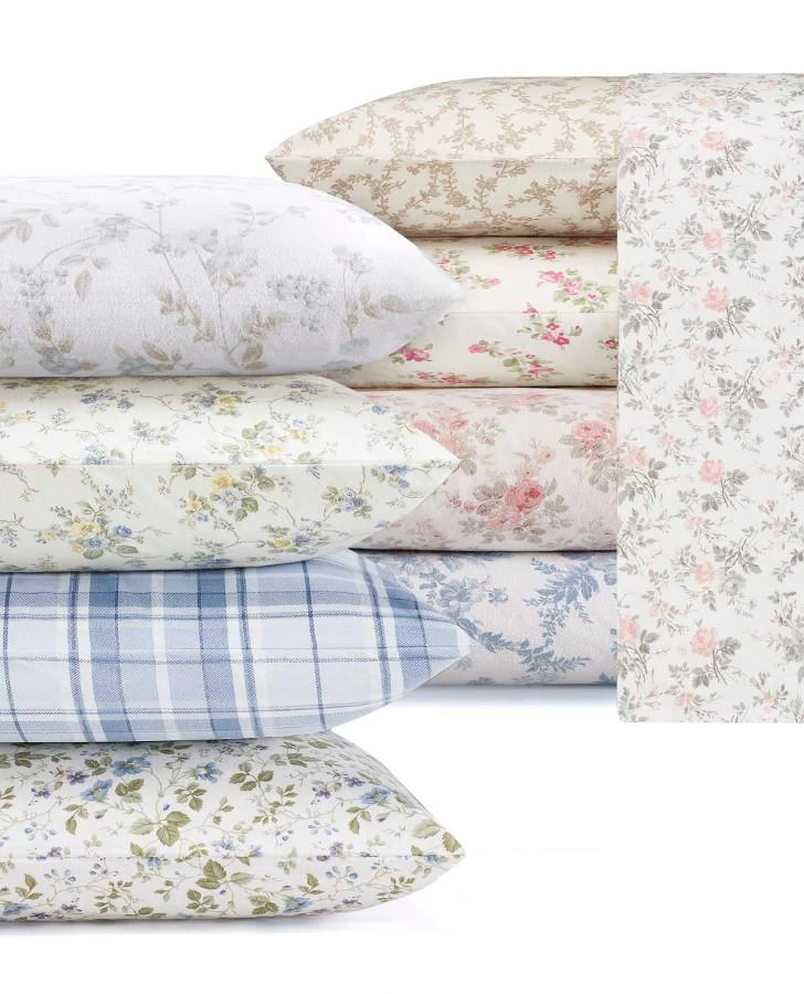Update your bedroom décor with a new Cotton Flannel Sheet from Laura Ashley. Choose from several gorgeous and elegant designs that are sure to coordinate with your bedding ensemble. With their quality construction, these sheets offer the ultimate comfort, warmth and style. The approved process for finishing our flannel sheets is an 8-leveled brushing standard. The cotton yarns are woven, then brushed 3 times on the face and once on the back, the fabric is then colored and/or printed and finished with 3 additional brush treatments on the face and 1 on the back. This process ensures a very comfortable, soft and cosy finish that will ease you into a restful night’s sleep. Set includes a fully elasticized fitted sheet that prevents slipping from your mattress and ensures a perfect fit. Sheets are machine washable for easy and convenient care.