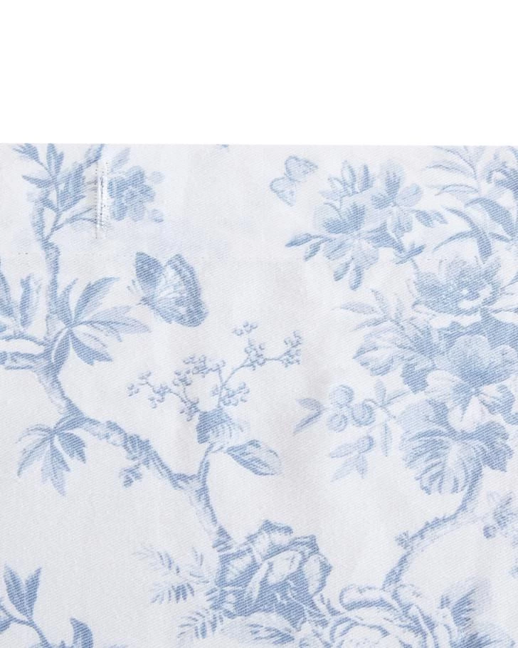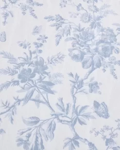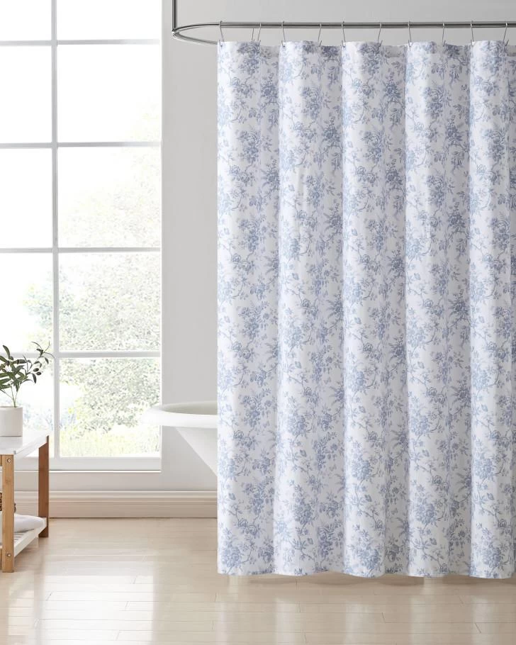 A refreshing cool blue in a sophisticated floral toile pattern is printed on crisp white in the Walled Garden Shower Curtain. Made of soft 100% cotton twill, the shower curtain measures 72″L x 72″W. Machine washable for easy care. Liner and hooks are not included.