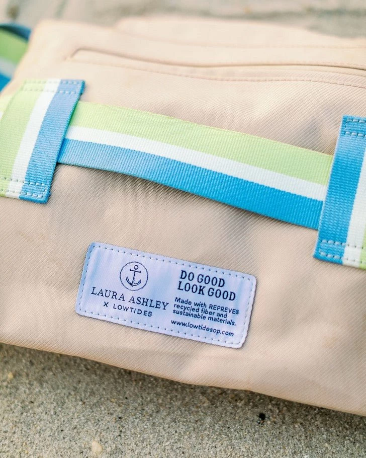 Be beach to dinner ready with the Laura Ashley x LowTides Multipurpose Beachpac. Connects to Dune High Beach Chair and made from 100% REPREVE material, this perfect hands-free bag attaches to the side of your LowTides ocean-saving beach chair for easy access all day long. After the sun, this stylish bag doubles as a waist pack or crossbody so you can stay hands-free as you head to happy hour! Thoughtfully designed with water sealant zippers and magnetic closers, keep your valuables dry, safe, and sand free, in any of the 4 pockets.