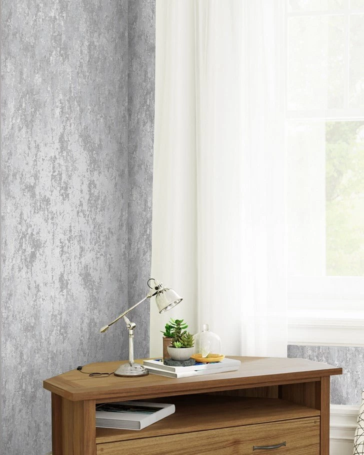 For a stunning contemporary backdrop to your interior, the Whinfell wallpaper is just what you need. The cool color palette of silver will compliment your furniture and allow your décor to take center stage. Embellished with metallic, this paper reflects the light for a dazzling and gleaming effect.