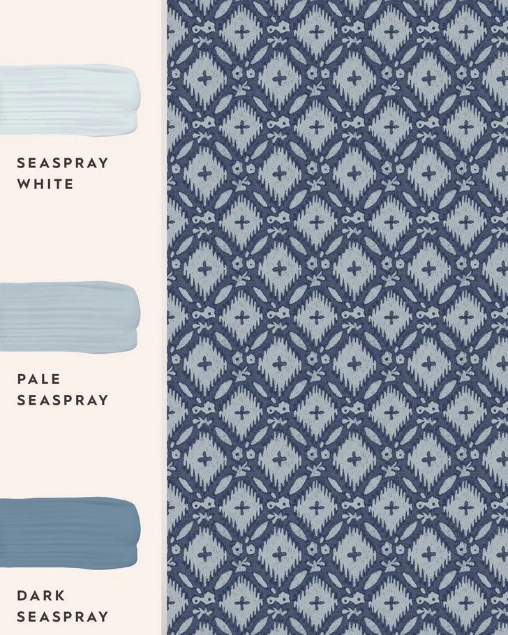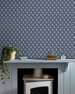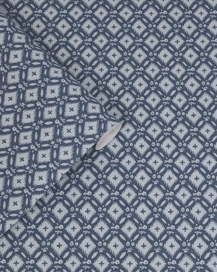 This heritage-inspired print is bursting with personality through its bold yet subtle tones. Featuring a geometric diamond shape pattern with small abstract flower shapes Whitebrook Dusky Seaspray Blue is sure to transform any living space. The perfect balance of a welcoming home feel and eclectic elegance.