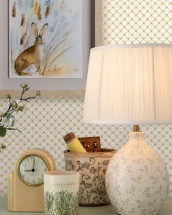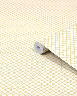 Timelessly elegant, Wickerwork wallpaper is a small-scale geometric print. Featuring a double-lined lattice pattern joined by a cross shape, this paper is subtle enough for all four walls. Designed in complementing tones of ochre yellow, this paper coordinates well with many shades of decor.