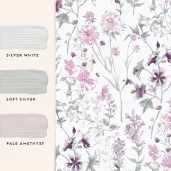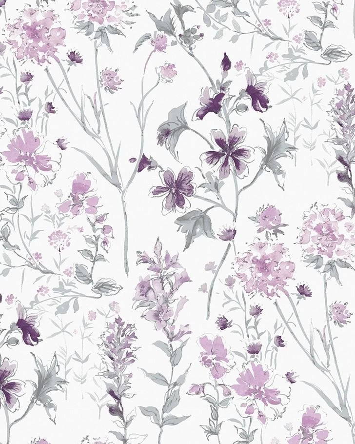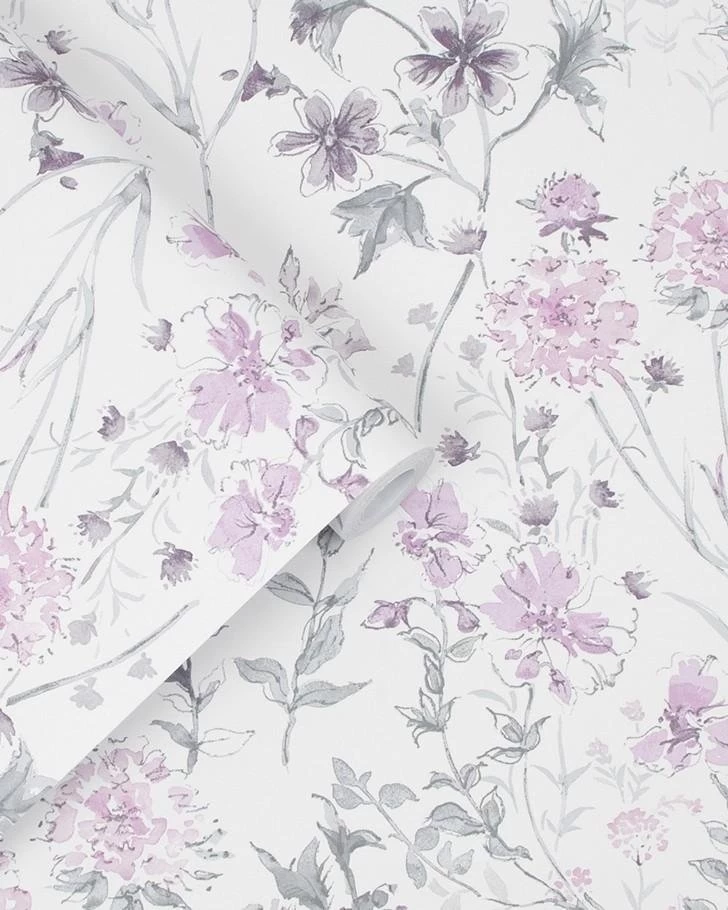 Featuring a gorgeous watercolor illustration of various British wildflowers, Wild Meadow is a contemporary take on a floral design. Romantic tones of pale iris against a white background create a pretty, dreamy style. This wallpaper is classy and stylish while still bringing excitement to your interior.
