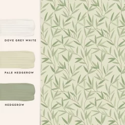 Fresh and contemporary, the Willow Leaf wallpaper will add a natural charm and country freshness to any room in your home. The mellow hedgerow colorway on an off-white background is calming and neutral. Bring the outside in with this beautiful botanical pattern.