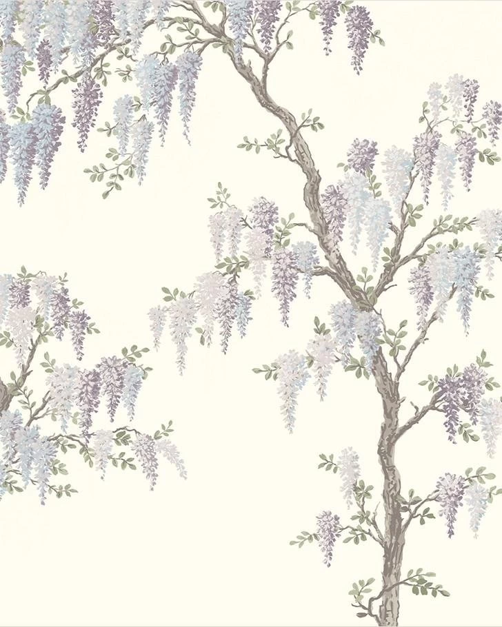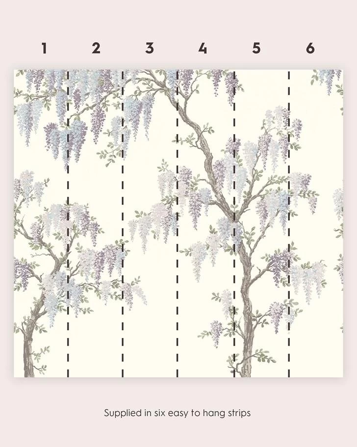 Create a statement wall in your home with this stunning Wisteria Mural. Featuring softly trailing branches and intricate blossoms, this colorful print is sure to impress. Laura Ashley murals come on one roll with 6 referenced panels.