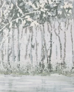 Add a cozy feel to your walls with the Woodland Walk wall art. This contemporary artwork is brought to life with subtle hand painted details. The blue and grey color palette allow this canvas to remain neutral while still adding sophisticated color to your home.